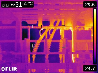[예) : 정격전류 115A의 IV 전선(22㎟ 가공)에 주위 온도 20℃에서 부하전류 30A 일 때 50℃를 나타냈다면 최고 허용 온도 60℃에는 미달하지만 문제가 있는 것으로 보고 원인을 찾아야 한다.]